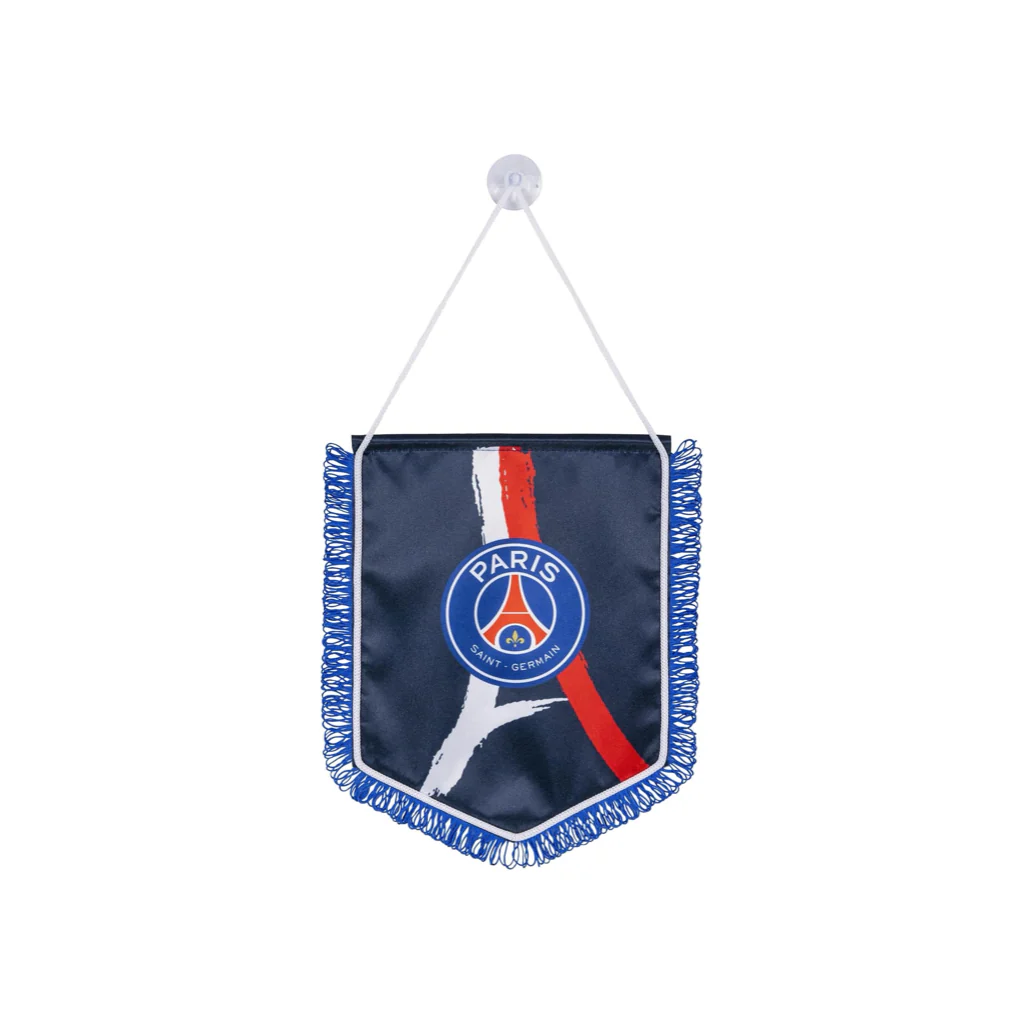 Conçu avec un textile résistant, imprimé du logo PSG et fini avec une cordelette de fixation, il est simple à accrocher et durable. Son format plus grand qu’un fanion classique permet d’afficher ta passion parisienne avec encore plus d’impact.