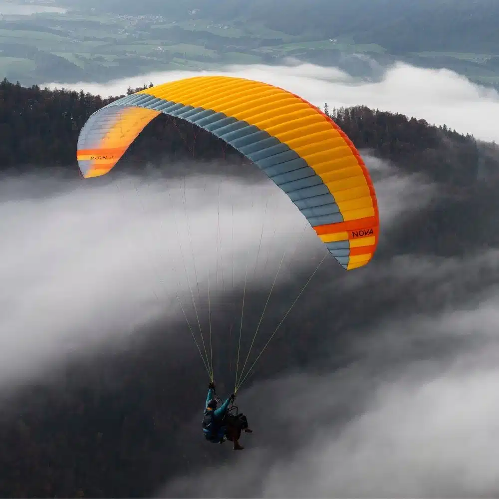 La phase de décollage d’un biplace doit être irréprochable, et le Bion 3 excelle dans ce domaine. Sa montée en voile est régulière, homogène et précise, quel que soit le vent ou le type de terrain. Sa faible vitesse de décollage facilite les départs même dans des conditions délicates.