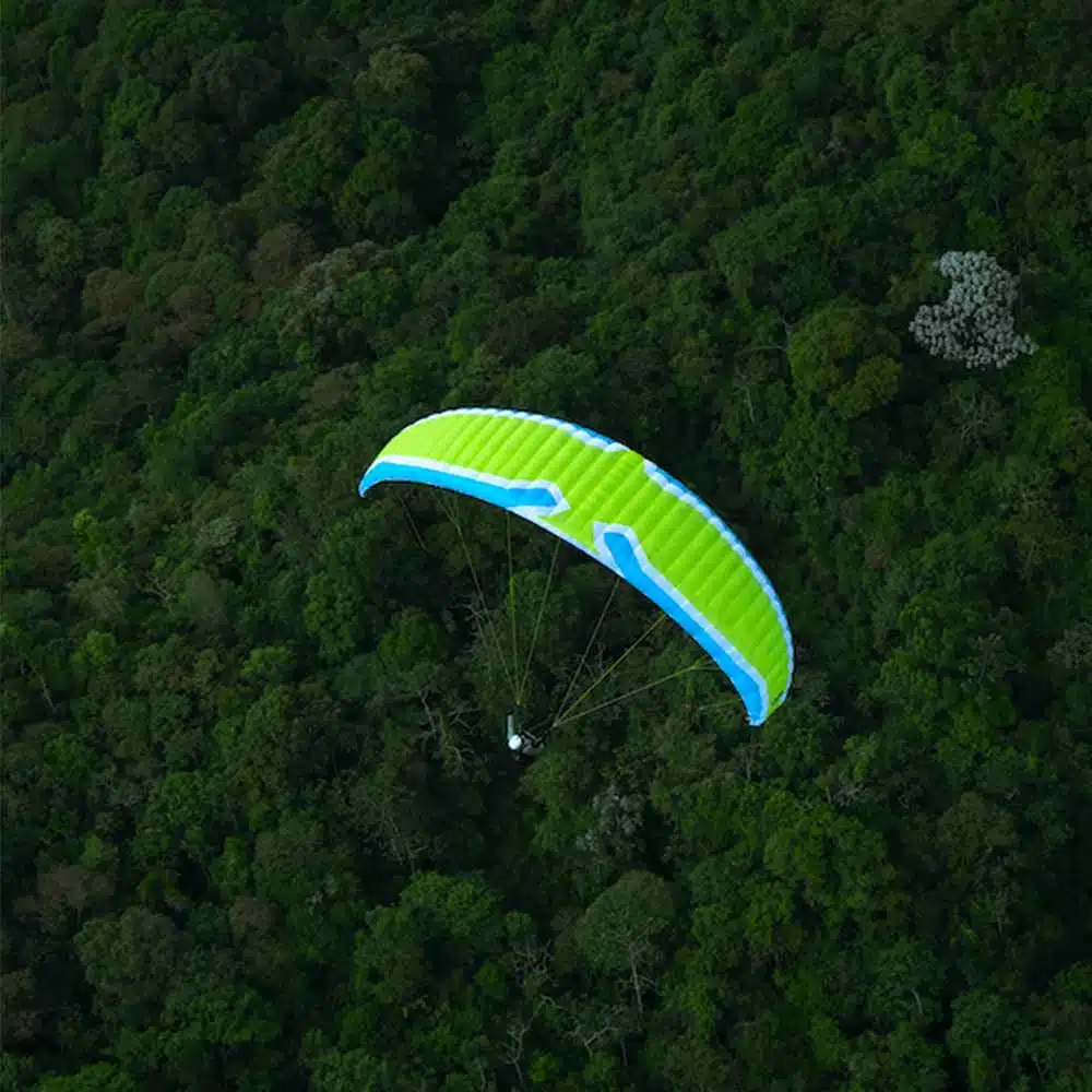 Grâce à un suspentage épuré, le démêlage et la mise en place de l’aile pour le décollage sont intuitifs. Lors du gonflage, l’élévation de l’aile se fait de manière fluide et contrôlée, se stabilisant automatiquement au-dessus du pilote sans nécessiter d’ajustements supplémentaires. Cette facilité assure une prise en main rapide et sécurisante.