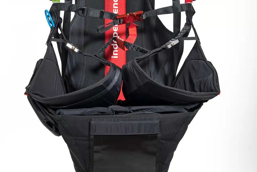 La pilot d’Independence ne pèse que 3,7kg, elle résulte d’une combinaison originale de sangles pour les jambes avec planchette assise, ce qui assure une grande liberté de mouvement que ce soit au sol et dans les airs pour un vol à deux.