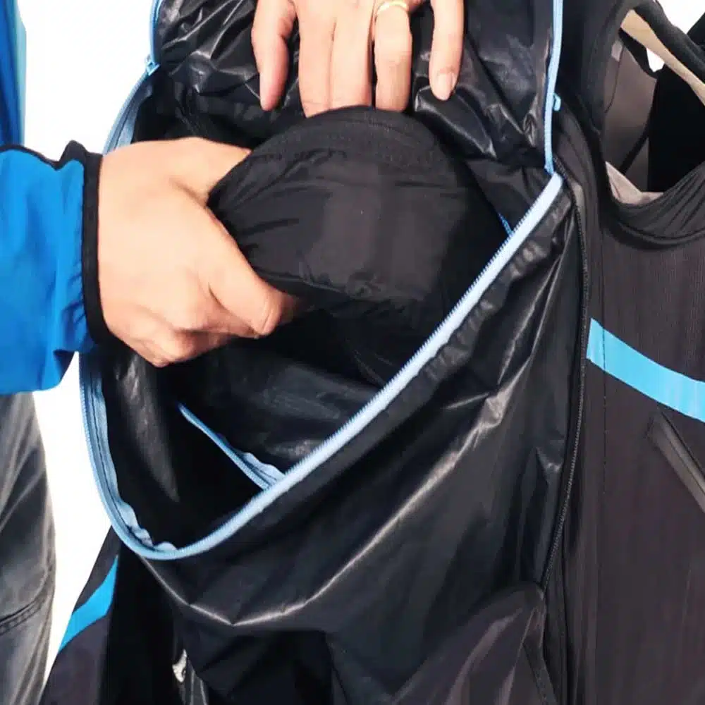 - Protection dorsale intégrée, accompagnée d’une poche de rangement supérieure amovible, conçue pour ne pas compromettre la sécurité
