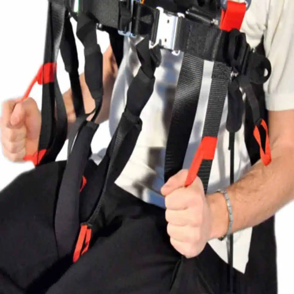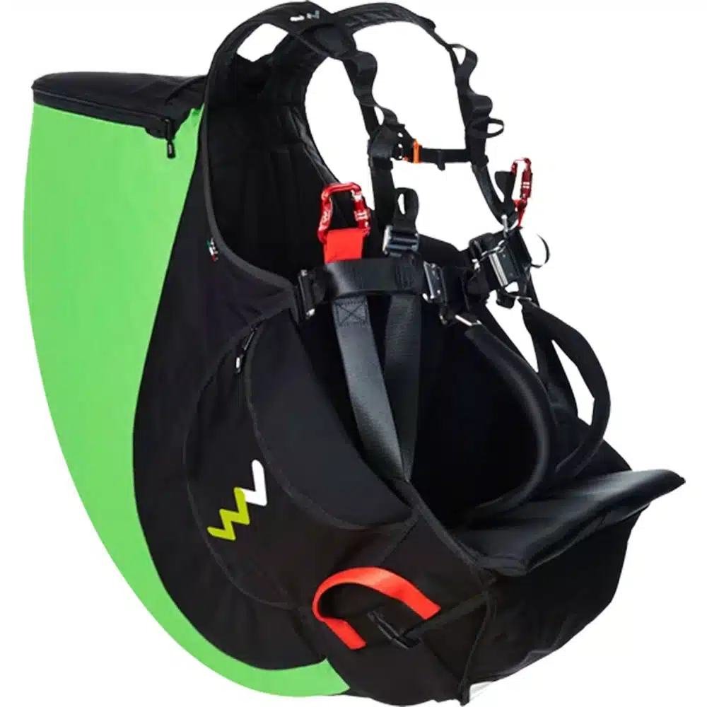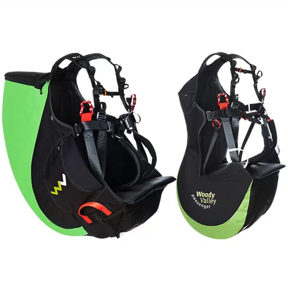 La sellette biplace Bix de Woody Valley se distingue par son design innovant. Elle est dotée d’une assise spacieuse qui s’étend vers l’avant, assurant ainsi une posture assise optimale et confortable pour le pilote dès le décollage, tout en maintenant le passager en sécurité entre ses jambes. Cette configuration est idéale pour renforcer le contrôle pendant les turbulences et maximiser le confort du pilote.