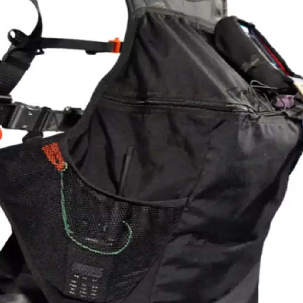 Un autre atout majeur de cette sellette est son grand conteneur de parachute de secours, stratégiquement placé sous le siège. Cette conception permet un déploiement facile du parachute, accessible des deux côtés, droite et gauche.