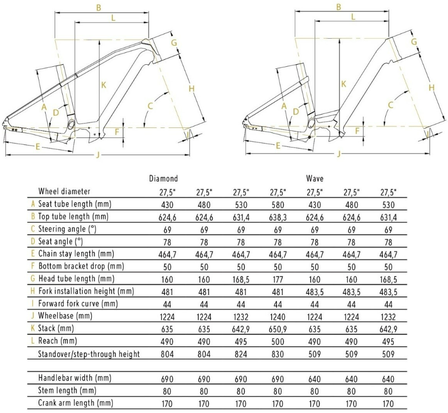Kalkhoff utilise sa plateforme de cadre “Medium” (niveau 3 sur 7). Ce cadre aluminium axé confort soigne son esthétique, en intégrant la batterie PowerTube à l’intérieur du tube diagonal. Un avantage supplémentaire : le choix du design entre le modèle wave (cadre ouvert) et le modèle diamant (enjambement haut). Trois tailles sont disponibles pour chaque type de cadre.